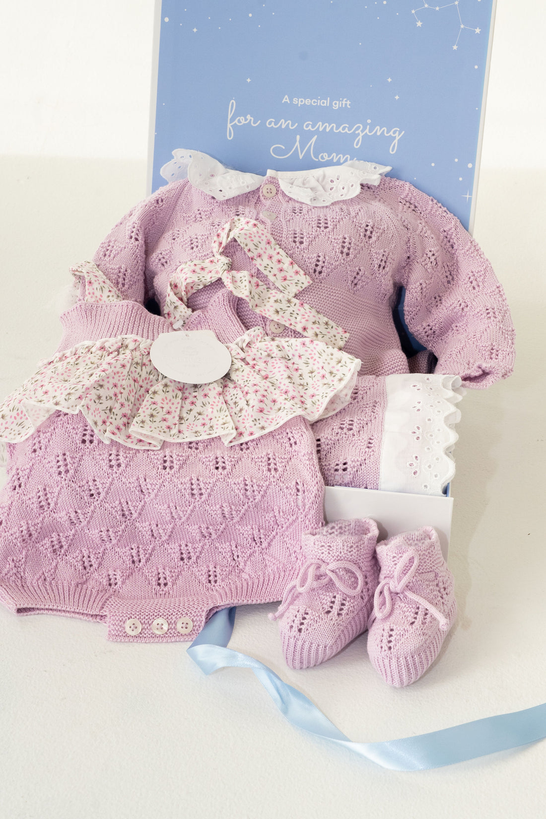 Lilac Whispers Gift Box- Four pieces Knitted Outfit- #9650/ #9731/TO93