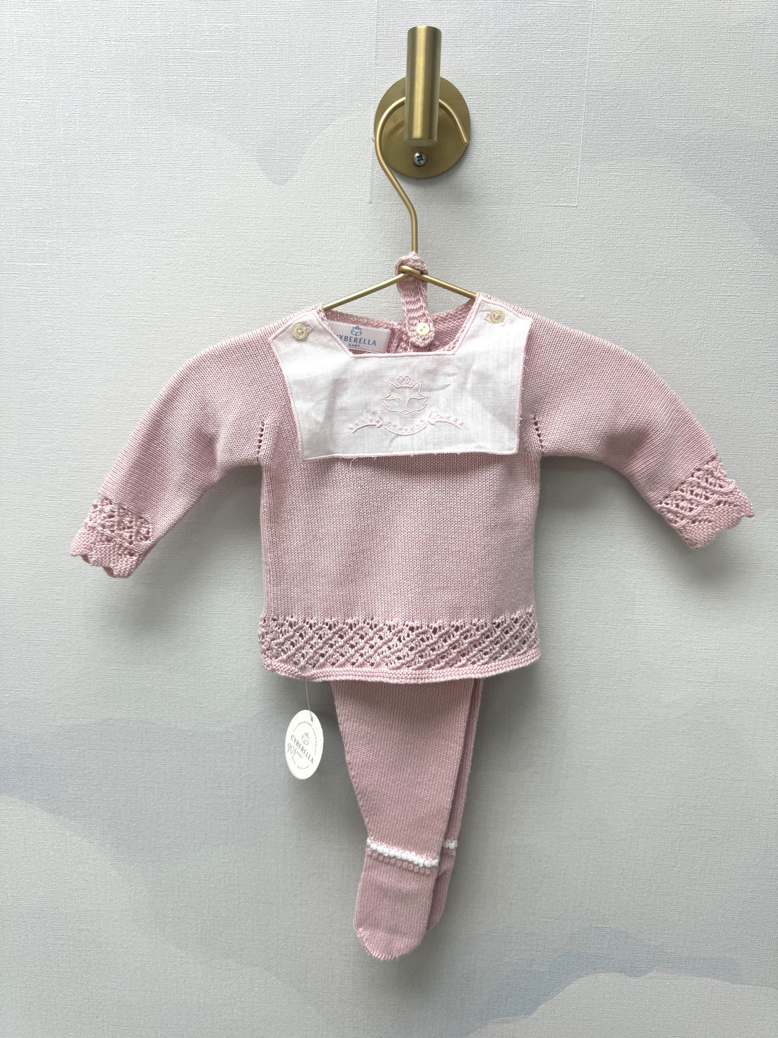 Elegant Knit Baby Set – pom pom Sweater & Footed Pants