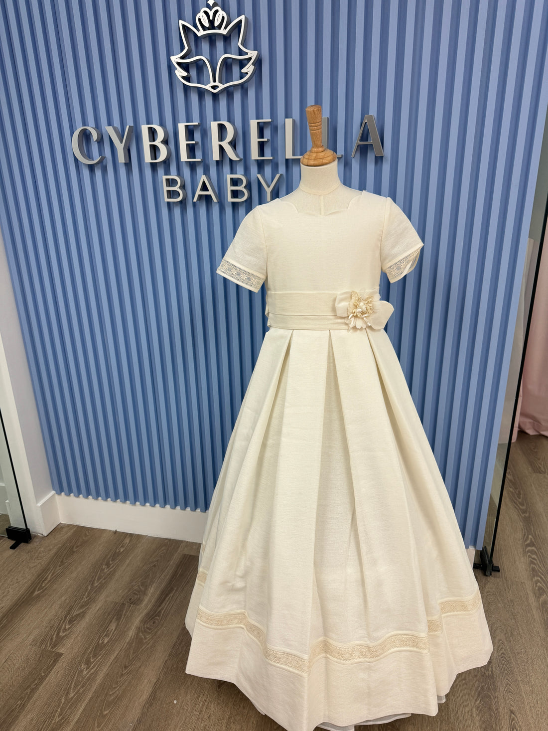 A stunning First Communion dress crafted from delicate plumeti fabric, offering a subtle textured effect...
