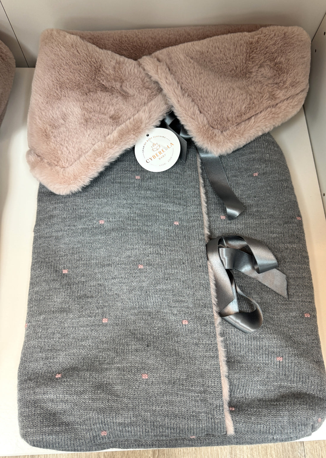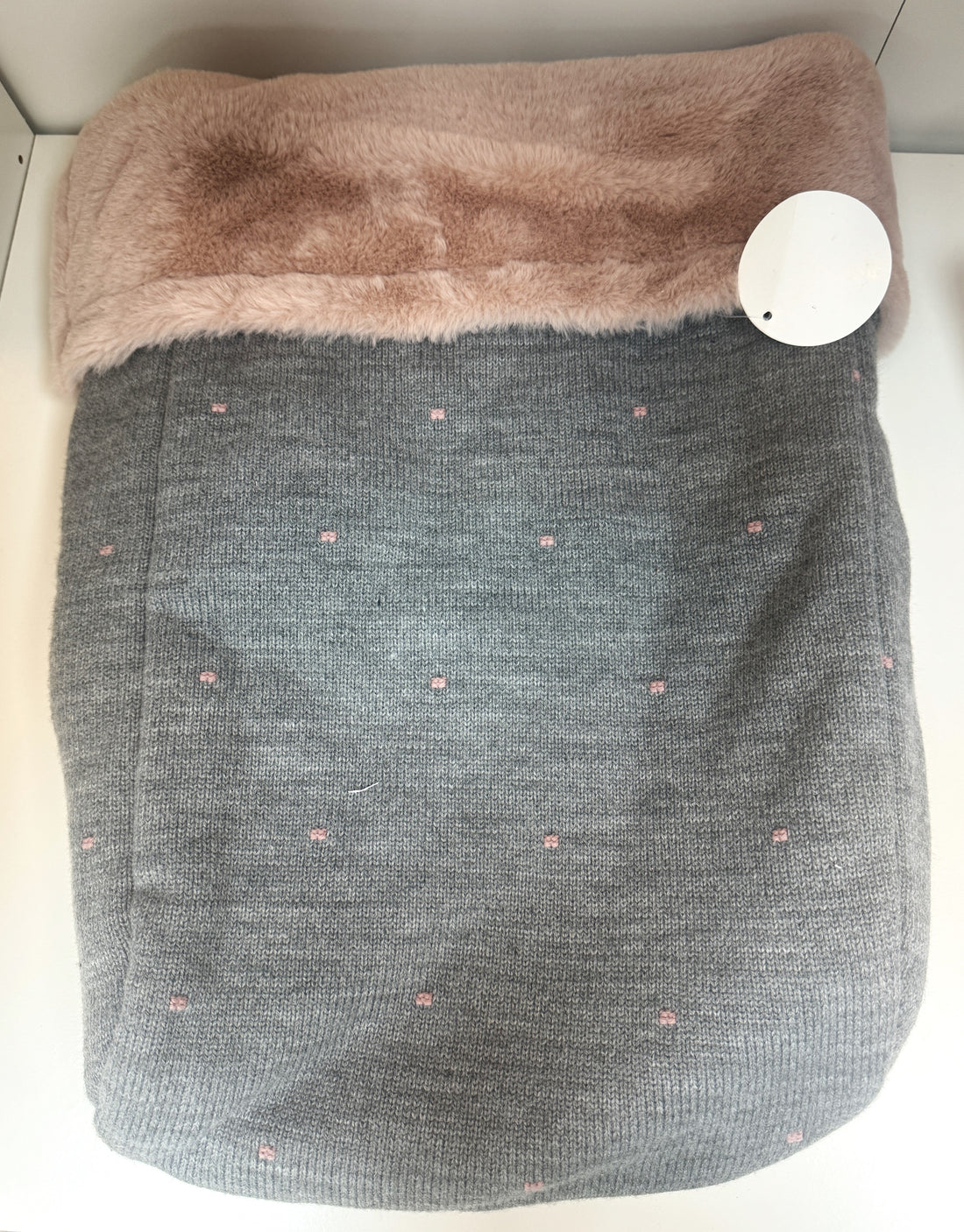 Cozy Crib Sack- Winter Knit Baby Wrap with Faux Fur, Grey & Blush