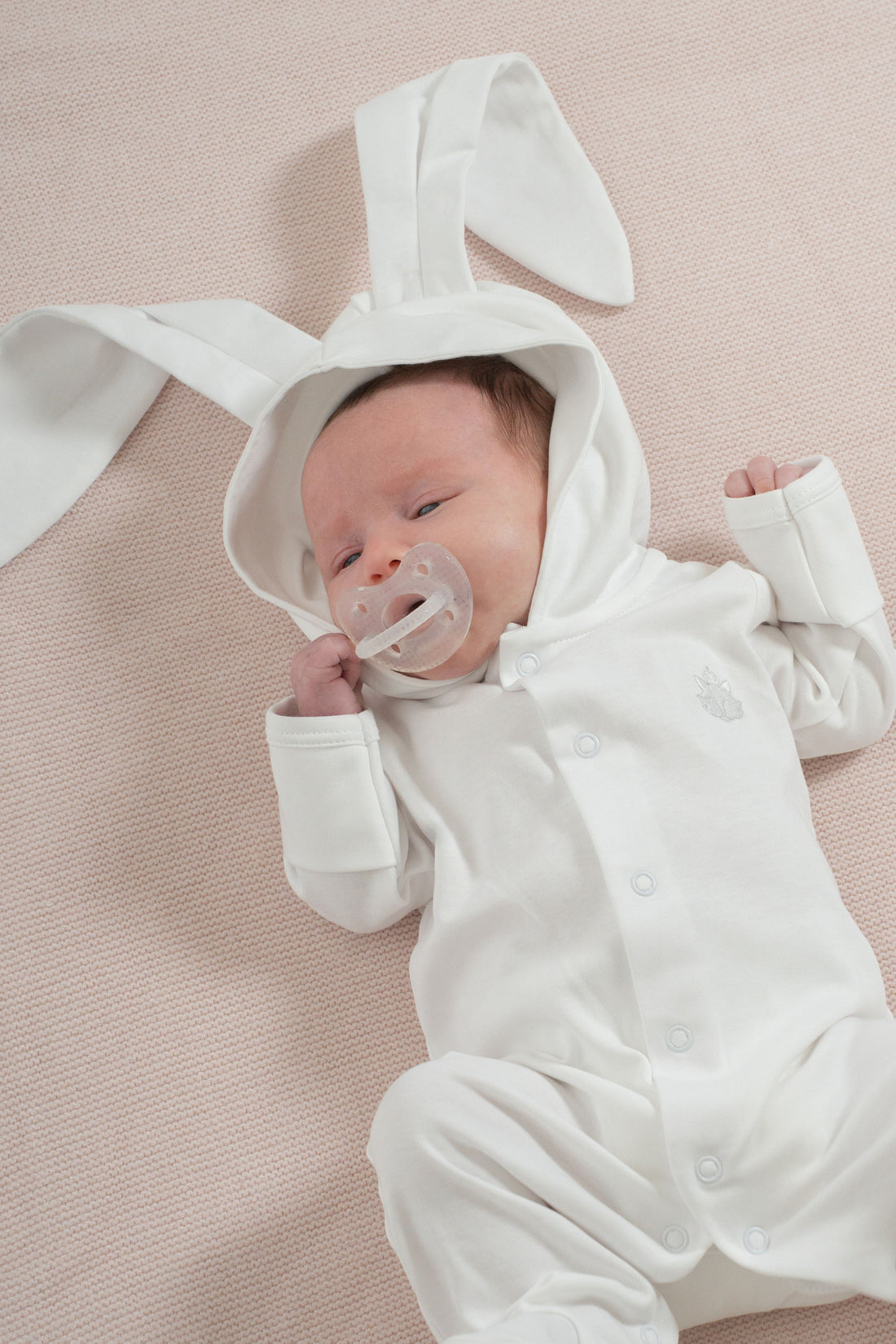 White Pima Cotton Baby Romper with Bunny Ears | Adorable Infant Outfit