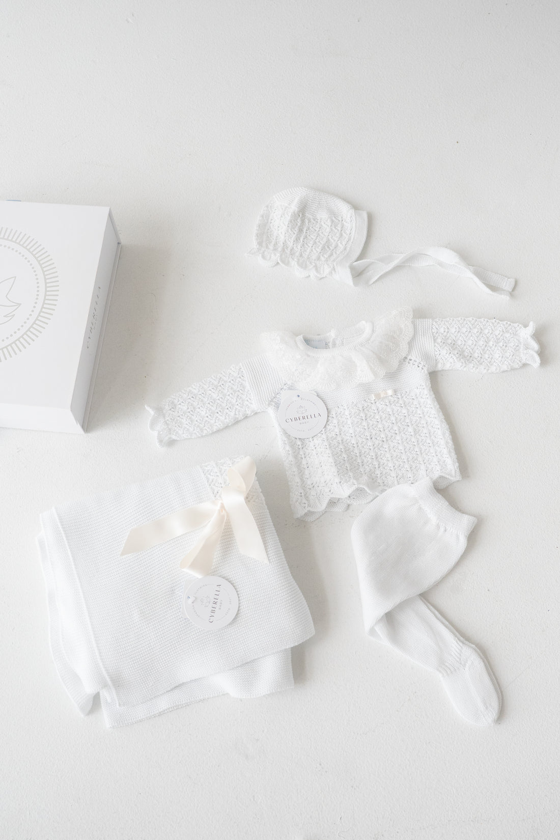 Wrap your little one in timeless elegance with our Whispering Cream gift set. This 4-piece...