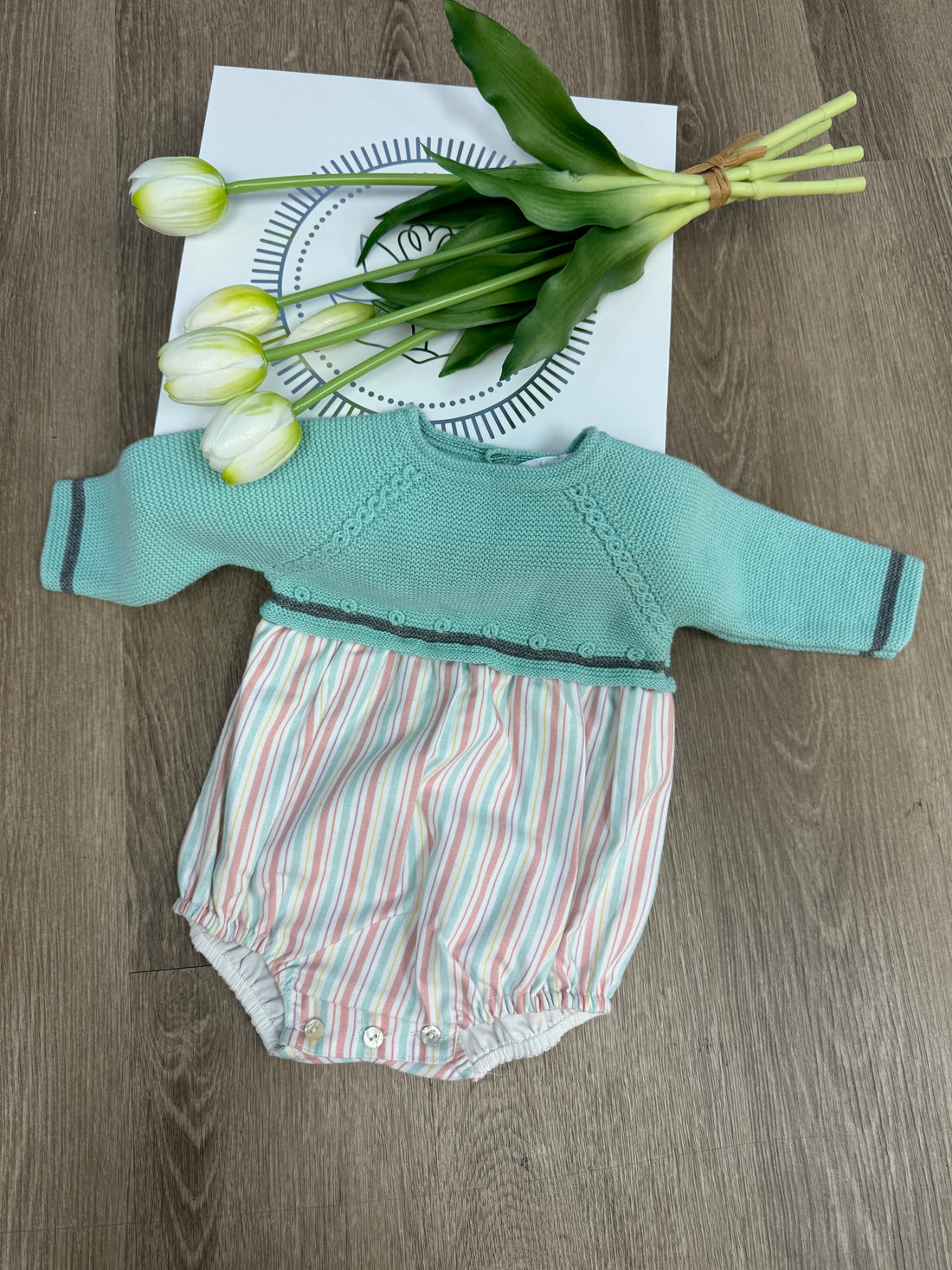 Pastel Striped Knit Baby Romper – Aqua Blue & Multicolor