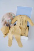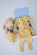 Wrap your little one in timeless elegance with our Tweed Dream 4-piece knitted gift set in MUSTARD COLOR. Thoughtfully designed for newborns, this collection includes a cozy sweater, matching pants, a charming bonnet, and a soft blanket. Each piece is crafted with care to ensure gentle comfort against delicate skin while providing warmth during cooler days. The harmonious color and classic tweed pattern offer a sophisticated look that’s perfect for both everyday wear and special moments. This set is an ideal gift for new parents seeking quality, style, and comfort for their baby’s early days.