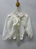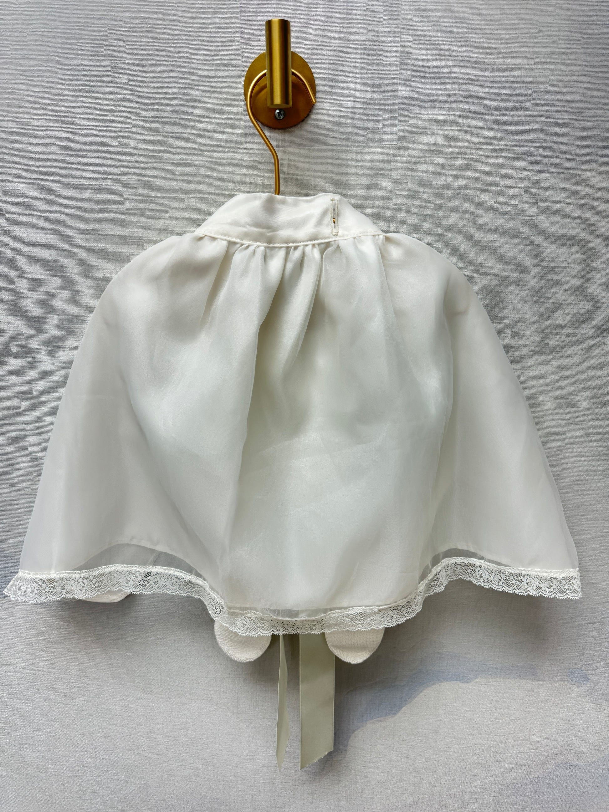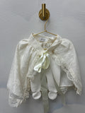 Wrap your newborn in elegance with our handcrafted Welcome Home Baby Skirt, designed to celebrate your baby's arrival in timeless style. Made in Spain from soft ivory satin and delicate lace, this heirloom-quality piece ties gently with a wide satin ribbon for a secure and graceful fit.