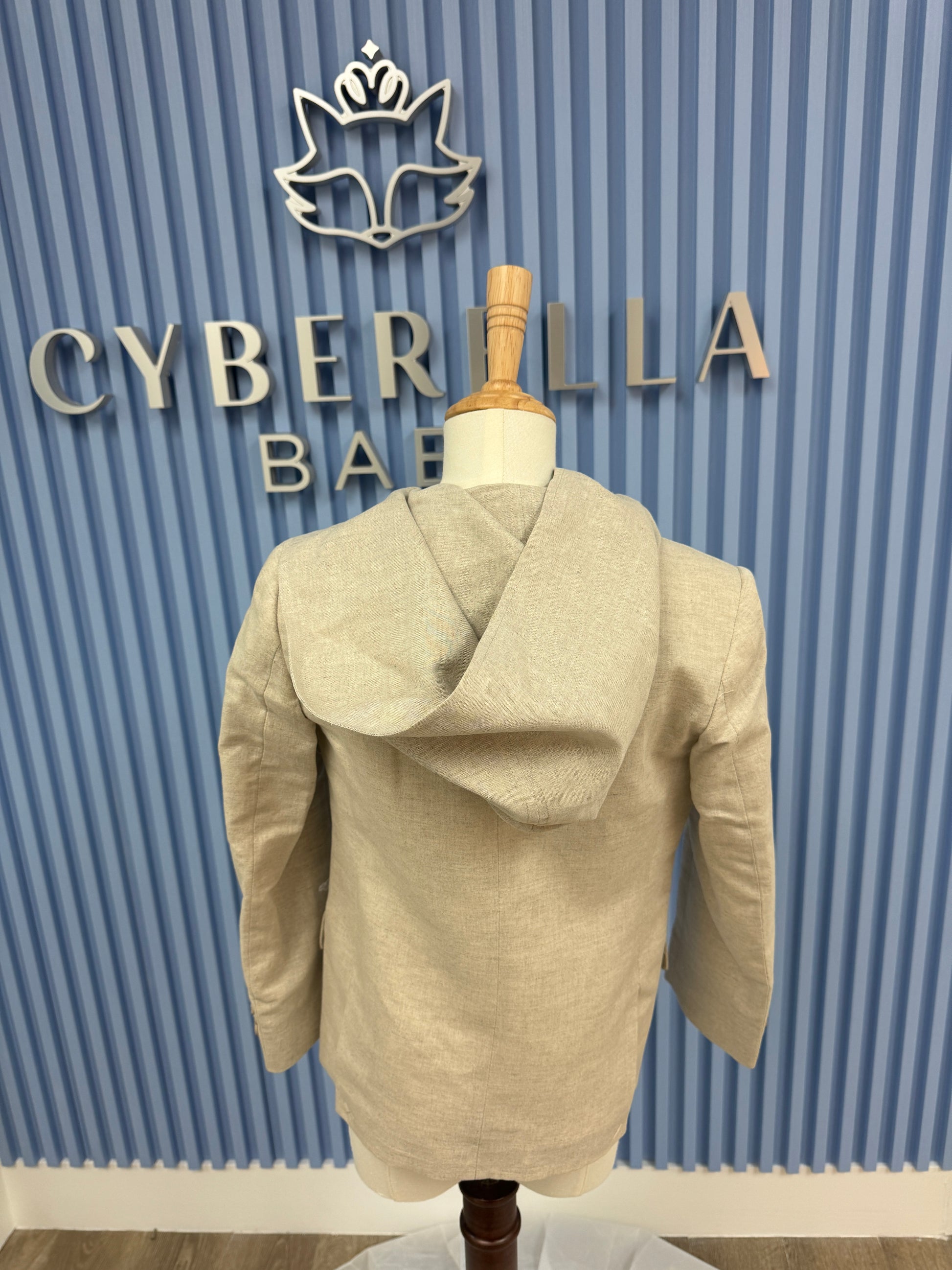 Give your little one a sophisticated preppy look with this Beige Linen Blazer featuring a modern hoodie detail. Expertly tailored from premium linen, this blazer combines timeless preppy charm with a contemporary twist. Designed with two front flap pockets, a chest pocket, and stylish button closures, it offers both comfort and elegance. The added hoodie gives it a relaxed yet refined vibe, making it perfect for weddings, parties, and upscale casual events. Ideal for achieving that effortlessly polished, preppy style.