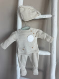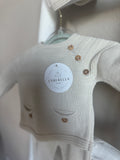 Snuggly, stylish, and sweet—our “Buttons & Giggles” 3-piece knit baby set includes a long-sleeve top, footed pants, and a matching bonnet. With wooden-style buttons, ribbed edging, and tiny pocket flaps, this outfit adds a touch of vintage charm while keeping baby comfy and cozy.