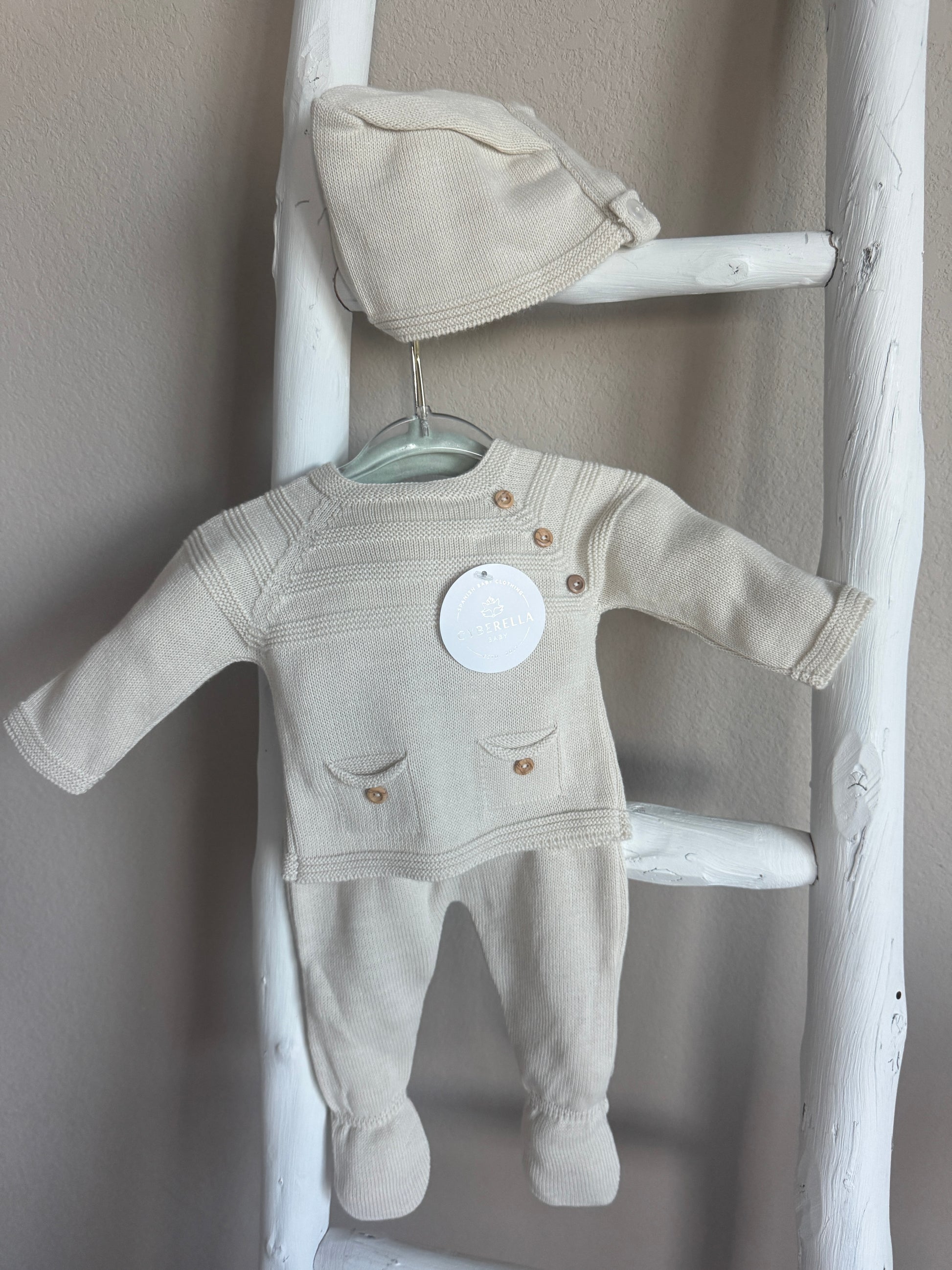 Buttons & Giggles – 3-Piece Knit Baby Set #C6004
