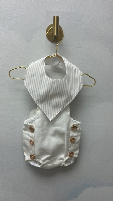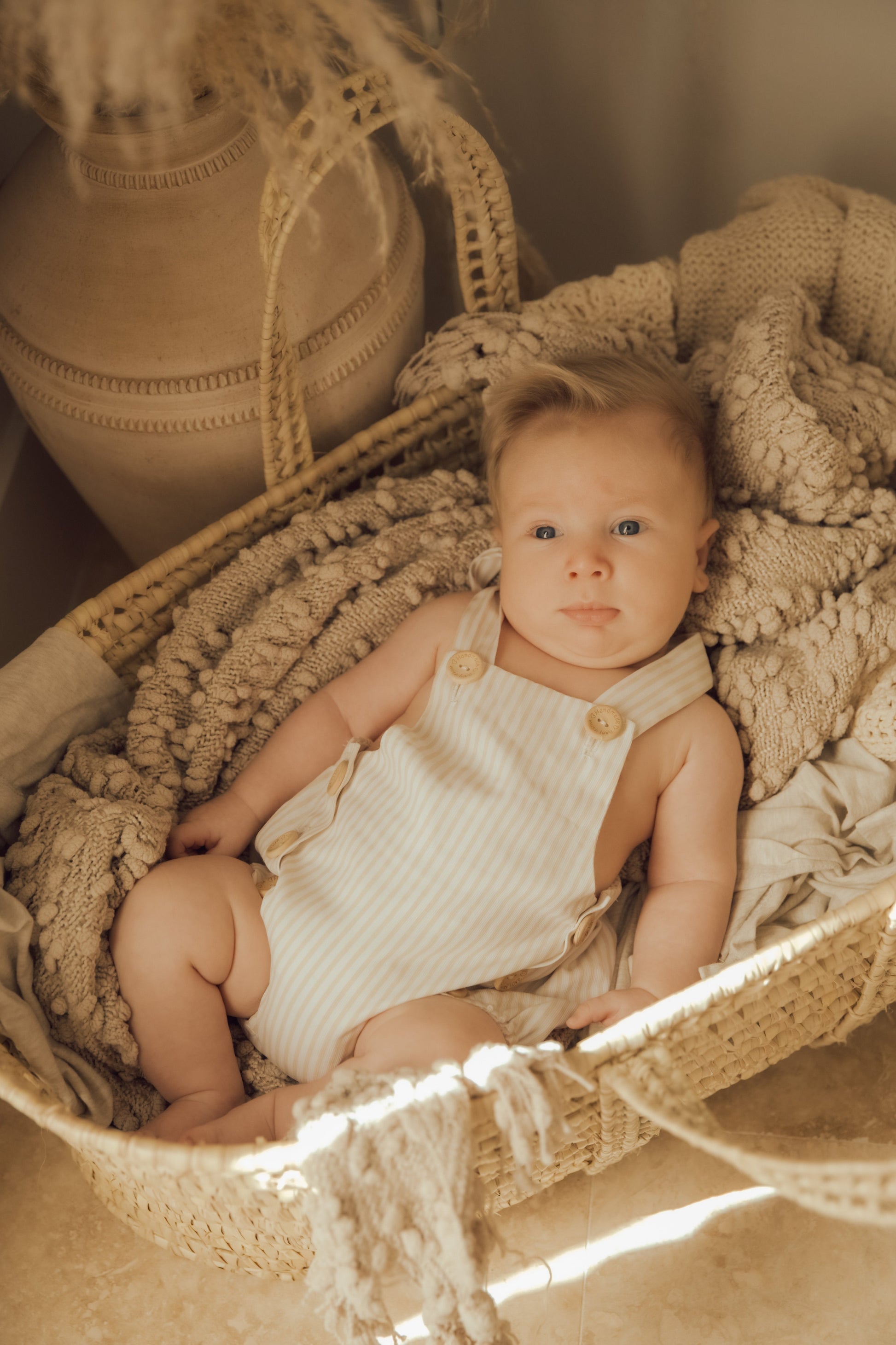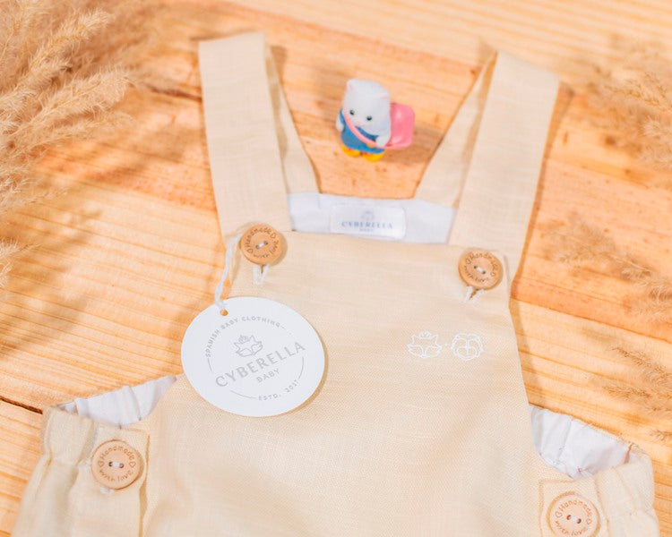 These adorable baby rompers are crafted from premium-quality linen and soft cotton, offering both comfort and elegance. Featuring charming wooden button details and adjustable straps, they are perfect for any special occasion or everyday wear. Designed with care and made in Spain, these rompers ensure style and breathability for your little one.