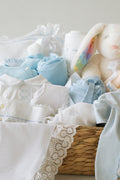 Celebrate the arrival of a baby boy with this beautifully curated blue basket, thoughtfully designed to pamper both mom and baby. Each item is selected for its softness, elegance, and timeless charm. This complete gift set includes: