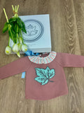 This charming sweater for baby girls features a delicate dusty rose color accented with soft mint green leaf design, offering a cozy and stylish look for cooler days. Made from soft, breathable fabric, it ensures comfort while keeping your little one warm. Perfect for casual outings or special occasions, this sweater adds a touch of elegance and warmth to any outfit. Easy to pair with dresses, skirts, or pants for a versatile addition to your baby girl's wardrobe.