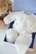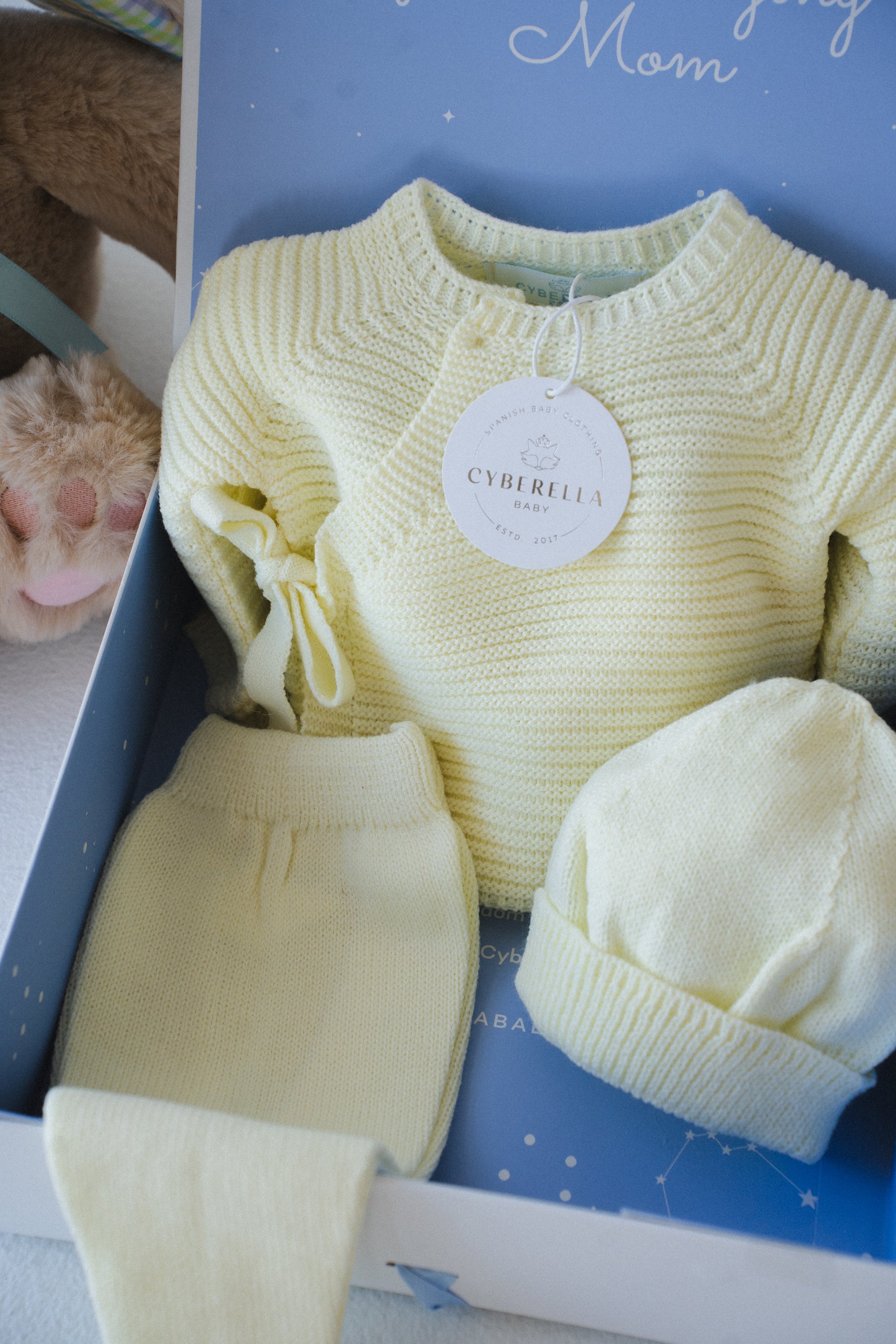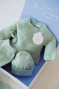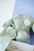 The Feather Collection comes in a lovely trio of gentle tones- green, yellow, and white - inspired by nature's calm and purity. Each piece is knitted with the finest softness, wrapping your baby in cozy comfort while adding a touch of timeless charm. Thoughtfully crafted in every detail, this set brings together elegance and warmth, making it perfect for every season and every sweet moment with your little one.