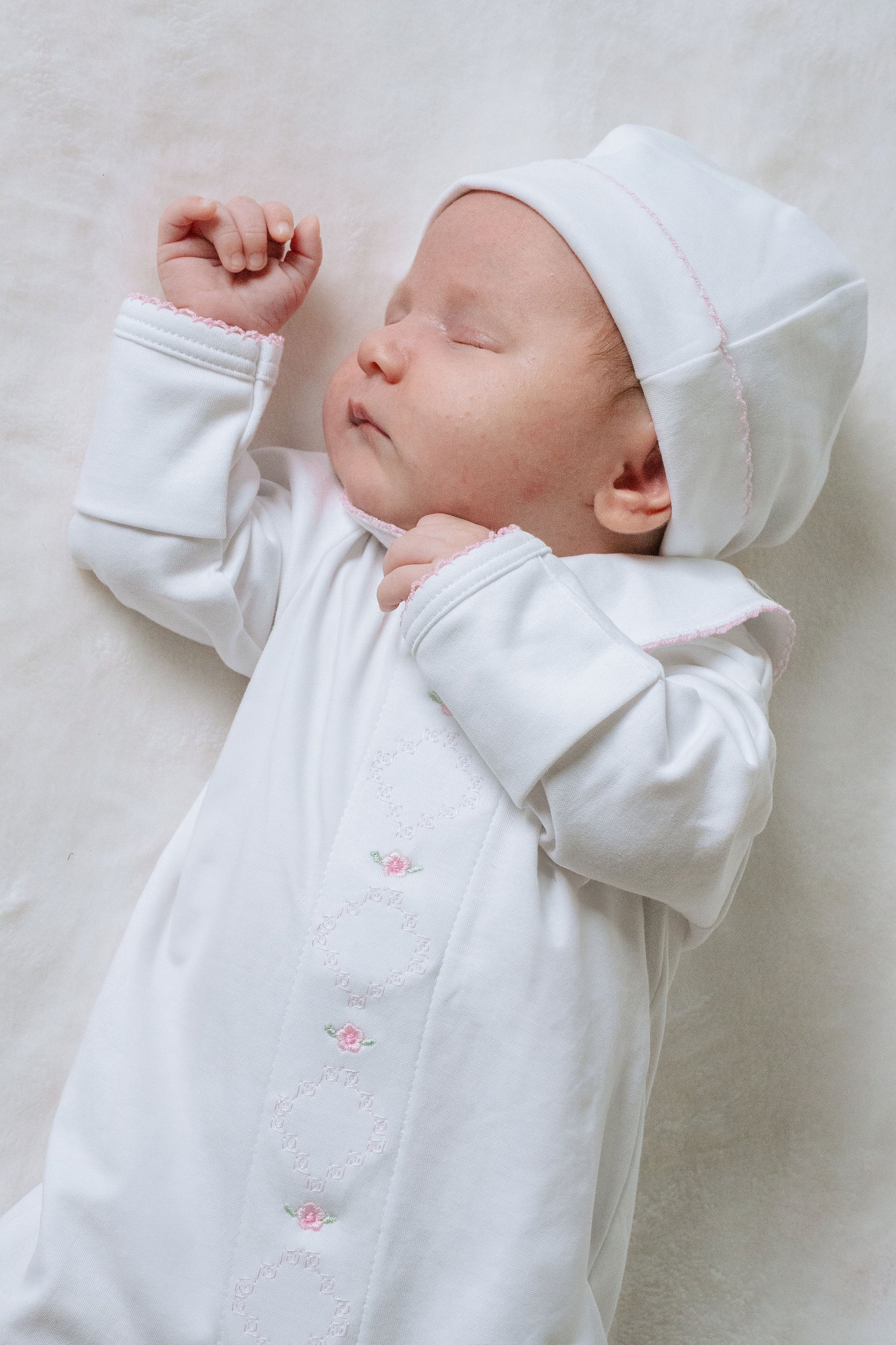 Diamond Embroidered Baby Romper with Hat in Pima Cotton | Stylish Infant Outfit