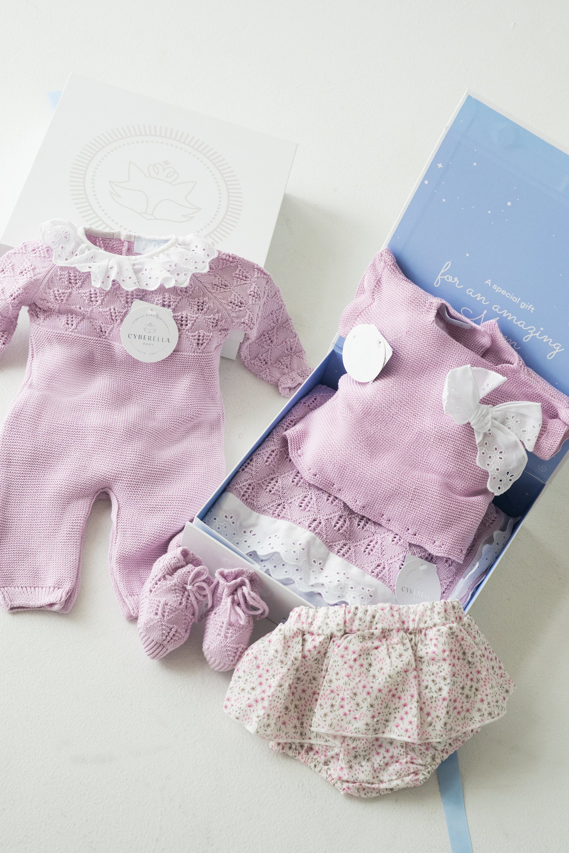 Lilac Whispers Gift Box- Four pieces Knitted Outfit- #9650/ #9731/TO93