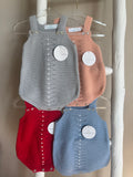 Polka Dot Knit Baby Romper – Button Strap Style  #SP4064