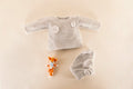 Wrap your little one in warmth and style with this charming knit baby set. Featuring a long-sleeve sweater with delicate button closures on the shoulder and a cute pompom detail, paired with cozy footed pants for full coverage. Crafted from premium-quality knit fabric, this set ensures comfort and softness against your baby's skin. Perfect for special occasions or everyday elegance.