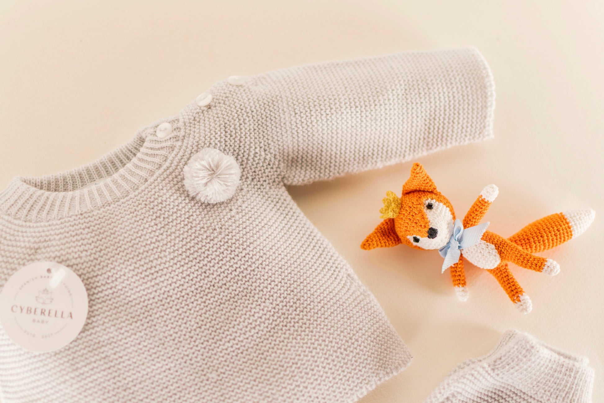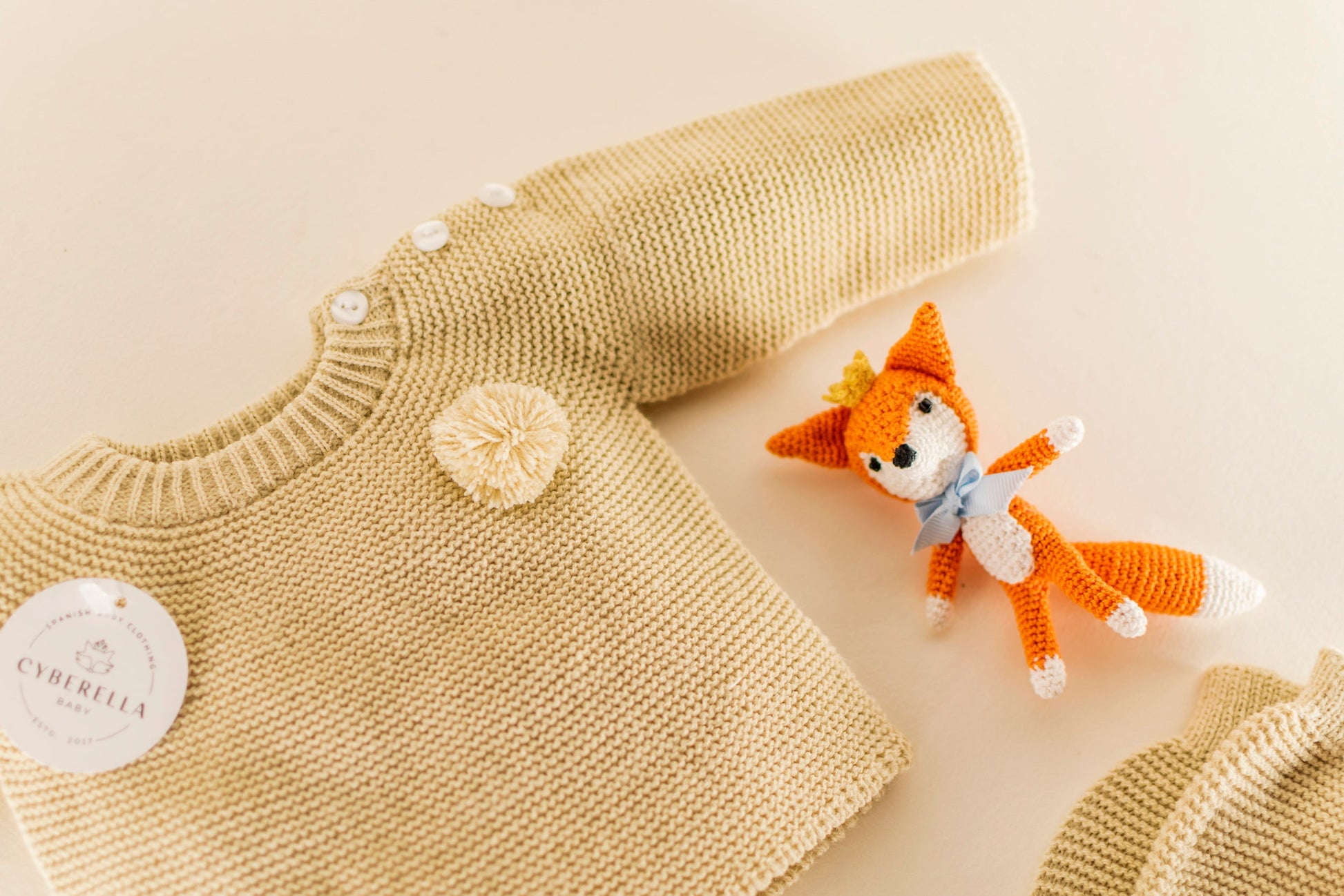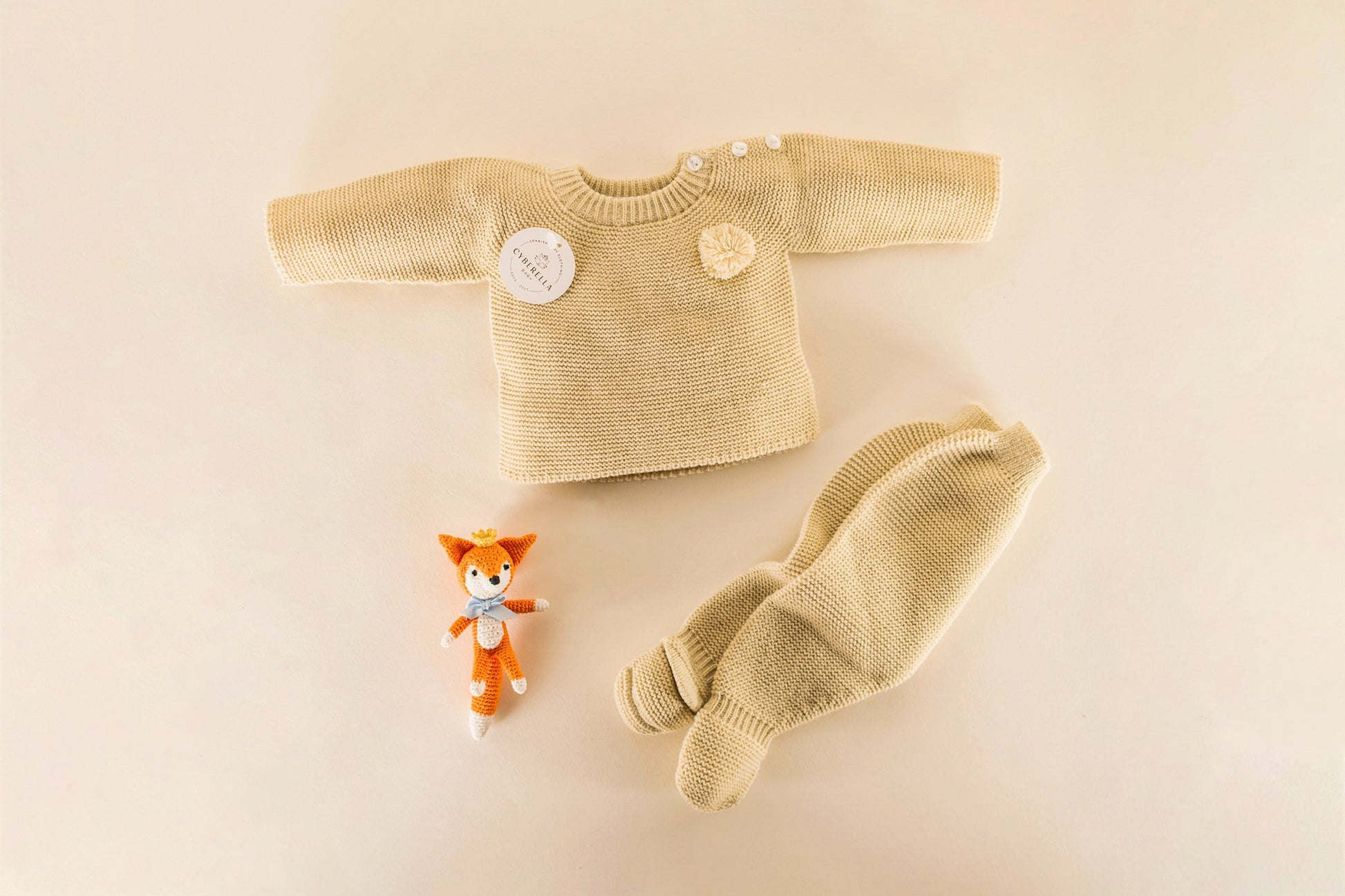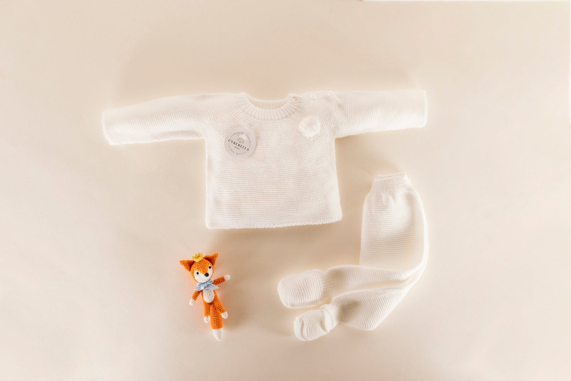 Elegant Knit Baby Set – pom pom Sweater & Footed Pants