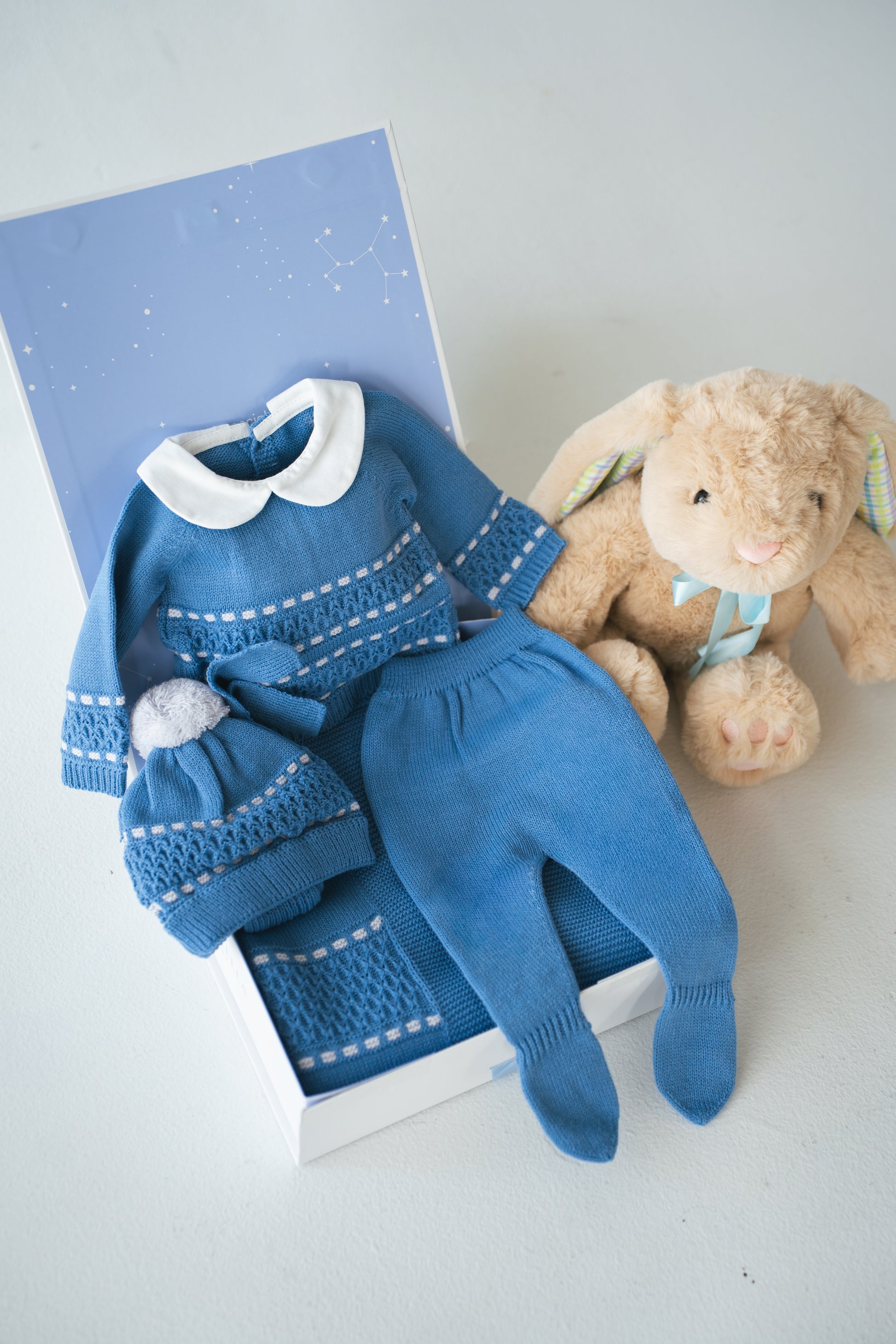 Designed in two timeless shades — Classic Baby Blue and Natural Blue — this set captures the pure essence of newborn elegance.