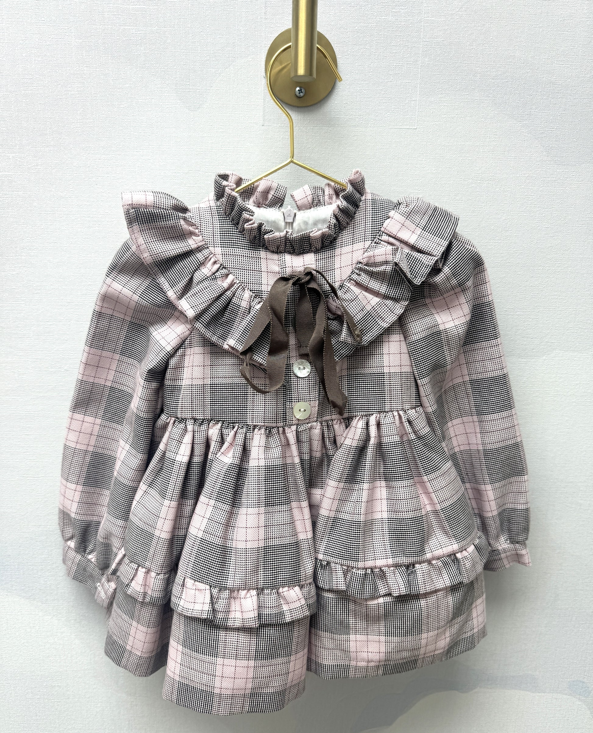 Sweet Tartan Pink and Brown Dress #4029 | Adorable Outfit for Girls | Perfect for Special Occasions and Holidays