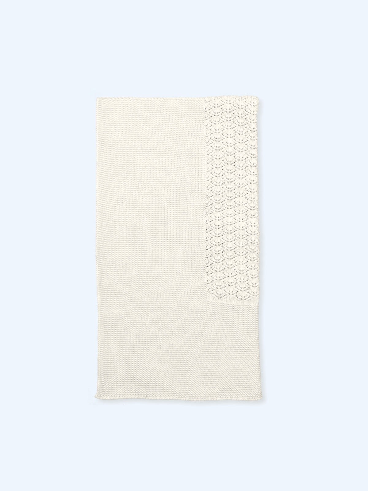 - A cozy knit blanket with satin ribbon accents.