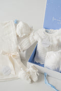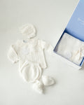 Wrap your little one in timeless elegance with our Whispering Cream gift set. This 5-piece collection is thoughtfully curated for newborns and includes: