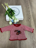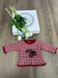 Classic with a twist! This white and red checkered baby sweater is a cozy statement piece with warm chestnut.  Crafted in Spain from soft, high-quality knit, it's perfect for adding a festive touch to your little one's wardrobe during cooler months.